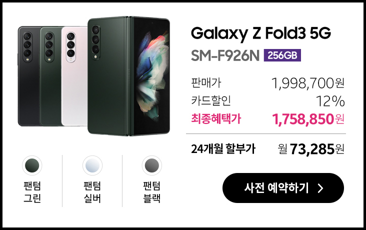 가격은 갤럭시z폴드3 256gb가 199만8700원, 512gb가 209만7700원이다.